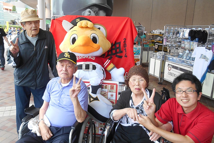 野球好きなご入居者と野球観戦へ。テレビとは違う球場の雰囲気はもちろん、勝利の花火が上がって満足感もひとしおだったそうです。